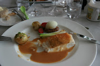 Kan helt klart rekommendera maten och vinet på Kiviks hotell. Underbart. Vi tog föreslagna viner och lite annat gott. Var grymt mätta efteråt. Widar är tydligen något av en matsnobb, han älskade foie gras och valrhonasorbeten....ratade delar av sin barnmat dock....