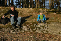 I söndags drog vi till Härlanda tjärn, Widar höll hårt i både pappa och moster |