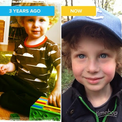 Laddade ner timehopappen för ett tag sedan, typ sist av alla. Iallafall, ju mer den plockar upp gamla bilder och stunder desto roligare är det. Den här är en bild på Widar för tre år sedan idag och så har jag lagt till bilden på Widar från promenaden igår. 3 år emellan och liten har blivit så stor att man inte får kalla honom för småtting längre och han kan knyta sina egna knutar! Det är stort det! Snart fyller liten fem år och jag älskar honom över allt annat även om han kan driva mig till gränsen ibland! Lika söt nu som då och när man är med honom så kan ingen ana hur det var i början när jag höll på att gå under. Älskade unge, tack för att du finns hos oss!
